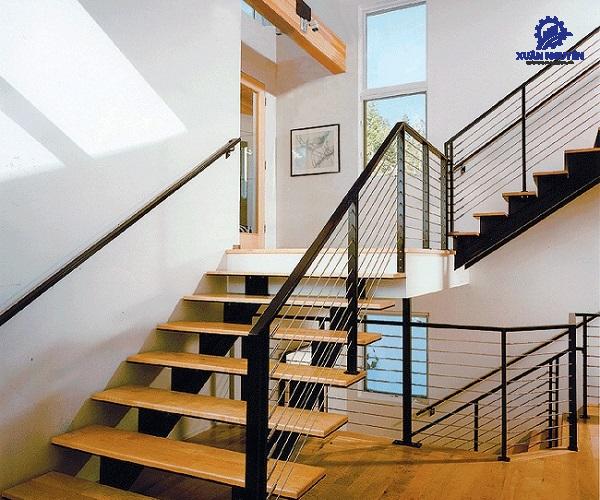- Lắp đặt phần bậc thang: căn cứ chiều cao của cầu thang mà xác định khẩu độ giữa các bậc sao cho hợp lý.